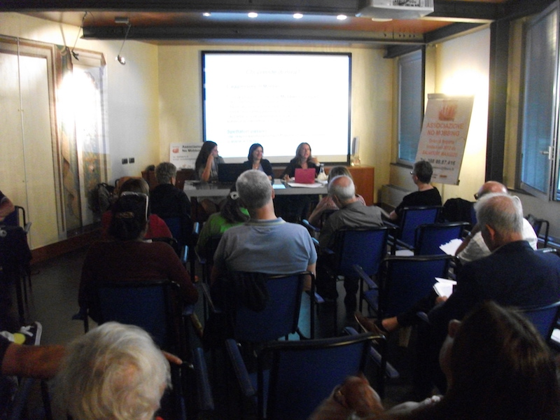 Nell’appuntamento del 9 settembre è intervento, per la parte legale, l'avvocato Antonella Micali che ha fornito nozioni tecniche e riferimenti normativi e ha risposto alle numerose domande poste dagli intervenuti. In particolare un partecipante ha esposto il suo caso: dipendente di una azienda privata , sottoposto a mobbing, ha agito legalmente per il reintegro nella sua mansione, il giudice ha accolto il ricorso d'urgenza e disposto che il lavoratore rientrasse nella sua mansione contrattuale. Il datore di lavoro, facendosi beffa dell'ordine del giudice, ha trasferito il dipendente dapprima in altra sede distaccata, e in seguito lo ha forzatamente messo a riposo. Un tipico caso di mobbing che sottolinea l'abuso di un datore di lavoro che si ritiene addirittura superiore a un giudice del lavoro e si fa beffa della sua decisione!