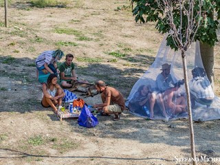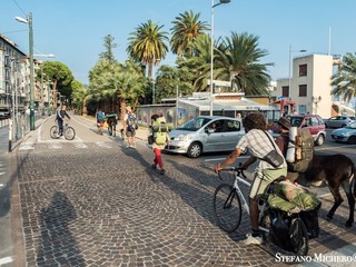 La gente che vede passare la curiosa combriccola dimostra sempre grande spirito di solidarietà ed accoglienza. Questi ragazzi confidano molto nell’aiuto del prossimo e fino ad ora è andato tutto bene. Inoltre lo potremo definire un vero e proprio viaggio a chilometro zero. Di tappa in tappa il gruppo si accampa dove ci sono le condizioni ottimali anche per il sostentamento dei loro amici a quattro zampe. Per mangiare si riforniscono esclusivamente presso le aziende agricole locali o nei mercati evitando la grande distribuzione.