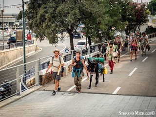 L’iniziativa ha preso il via il 15 marzo da Santiago De Compostela in Spagna. Lungo il tracciato dell’omonimo Cammino si sono via via uniti numerosi ragazzi e ragazze. Un po’ come i due asini arrivati in sorte al gruppo a Pamplona quando è stata presa la decisione di barattare un’automobile di appoggio per le due bestie da soma. Da quel momento i due asinelli sono stati ribattezzati Maitan (Amore in basco) e Salam (Pace in arabo) e sono diventati fedeli compagni di viaggio. Inoltre, da due diventeranno presto tre perchè Maitan è incinta.