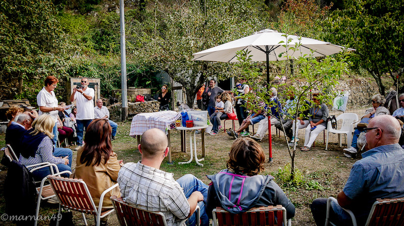 "Ecco il mio racconto della "Giornata internazionale della terza età" così come si è tenuta in Cervo presso l'asineria del Ciapà oggi, 1° ottobre 2017. Raccontano i promotori dell'iniziativa. Bianca Debernardi: "Sono sempre stata consapevole della grande fortuna di vivere e insegnare in un paese incantevole come Cervo e il mio amore per questo borgo ho cercato di trasmetterlo ai bambini. Quattro anni fa sono andata in pensione e le colleghe dell'lstituto Comprensivo di Diano Marina, sapendo della mia passione per gli asini, mi hanno regalato Margherita. Qggi grazie a lei, all'Assoeiazione dell'Endas, di cui faccio parte, alla Cooperativa dell'Arca che gestisce il Museo etnografico del Ponente Ligure, al Comune di Cervo abbiamo realizzato un Progetto: "Quando a Cervo c'erano gli asini" che permette ad adulti e bambini di conoscere e riscoprire questi teneri e tenaci animali attraverso ad attività che propongo all'Àsineria del Ciapa'. Inoltre organizzo passeggiate “a passo d”asino” per condividere con lentezza le risorse naturali del Parco Comunale del Ciapà situato vicino al centro storico di Cervo uno dei Borghi più Belli d'ltalia, paese incantevole non solo di mare, paese di contadini e naviganti. Senza l'asino le nostre sponde nei vari paesi del Mediterraneo non sarebbero quello che sono. Questo affidabile compagno veniva usato per trasportare merci, tracciare sentieri, far girare le macine dei frantoi, lavorare negli uliveti, nei campi e nelle colline che scendevano al mare e nel tempo libero era compagno di giochi dei nostri nonni. A Cervo in particolare, molte famiglie possedevano l'ase esistono ancora testimonianze sui muri del centro storico nel museo etnografico e nella memoria fotografica raccolta nelle pubblicazioni dell'associazione Cumpagnia du Servu: ”Cervo Ieri”. Alla manifestazione hanno partecipato anche gli scrittori Pier Luigi Coda autore di "Martina e l'efferata banda del salamino" e Marino Muratore autore della "Scuola degli asini".