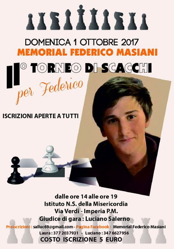 Si è svolto con successo, in un clima di amicizia, il secondo Memorial – Torneo di scacchi, dedicato a Federico Masiani.