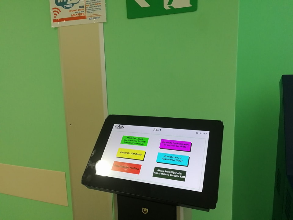 - Al Piano Terra: Centro Prelievi , CUP (centro unico prenotazioni), Distribuzione Farmaci, Sportello Unico (Anagrafe Sanitaria, ADI, Assistenza Protesica, Trasporti Ambulanze, Residenze Protette, Patenti, Porto d’Armi, Sanità Animale, Ufficio Relazioni con il Pubblico);
