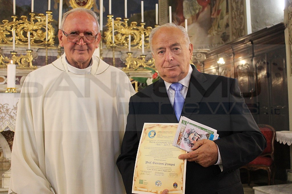 Alle 18,15 è stata celebrata da S.E. Mons Antonio Suetta nella Concattedrale di San Siro, una Santa Messa solenne, animata dal coro parrocchiale “San Germano”, con la presenza di autorità civili e militari. Al termine della S.Messa, un rinfresco offerto dall’Istituto “Padre Semeria” di Coldirodi diretto da Silvia Madaro, è stato organizzato nel salone parrocchiale. Grazie alla partecipazione e contributo di Confartigianato, è stata distribuita la “Sardenaira DE.CO” di Carlo Rovere(presidente panificatori Confartigianato Imperia). Alle 21 al teatro del Casino, in ricordo del 150° anniversario di Padre Semeria, è stato organizzato con successo, un ricco programma musicale, con testimonianze, dei video e una relazione del dott. Alberto Guglielmi Manzoni, su “Padre Semeria e il rapporto con Sanremo e i grandi oratori sanremesi”. Hanno presentato la serata Maria Grazia Regis e Roberto Pecchinino, che ha curato anche la regia. Applauditissimi il quartetto a plettro “Filopoli” del circolo “P.Mascagni”diretto dal M° Antonio di Lauro, accompagnati dalla bella voce del Soprano Laura di Rito. Straordinaria l’esposizione del Conferenziere Alberto Guglielmi Manzoni, sulla vita di Padre Semeria. Durante la serata sono stati trasmessi alcuni video su Padre Semeria, seguiti dalla testimonianza del Parà Agrifoglio Amedeo, che grazie alla sua presenza al corteo dello scorso anno, dove ha avuto un grave malore e che è stato subito soccorso, ha detto: se non partecipavo al corteo organizzato per Padre Semeria, dove ero in mezzo a tanta gente, forse oggi non ci sarei più, perché abitando da solo, si sarebbero accorti del mio svenimento solo dopo molte ore. Ringrazio Padre Semeria, per avermi salavato la vita e il mio Presidente Tommaso Russo che si è subito accorto di quanto mi stava accadendo. Al termine della bella serata, sono state consegnate dal Presidente Don Michele Celiberti dell’Opera Nazionale per il Mezzogiorno d’Italia, Don Antonio Giura (Superiore Generale) e da Don Cesare Faiazza(Segretario Generale) della famiglia dei Discepoli, delle pergamene firmate anche dal Vescovo Mons.Suetta a tutte le persone e associazioni che hanno collaborato durante l’anno alle cerimonie di apertura e chiusura dell’Anno Semeriano.