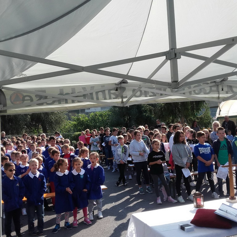 Si è svolta ieri, sul piazzale antistante il plesso scolastico “De Amicis” di Ospedaletti, la messa di inizio anno scolastico per gli alunni e il personale docente e non di tutte le scuole del territorio comunale.