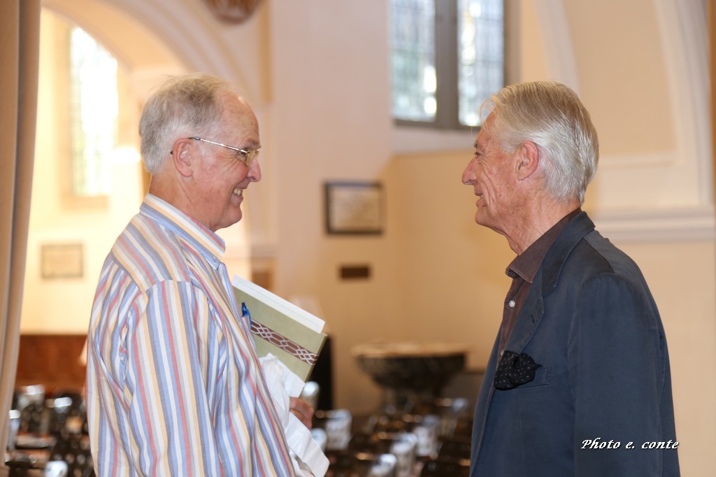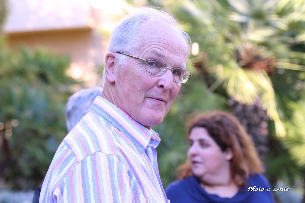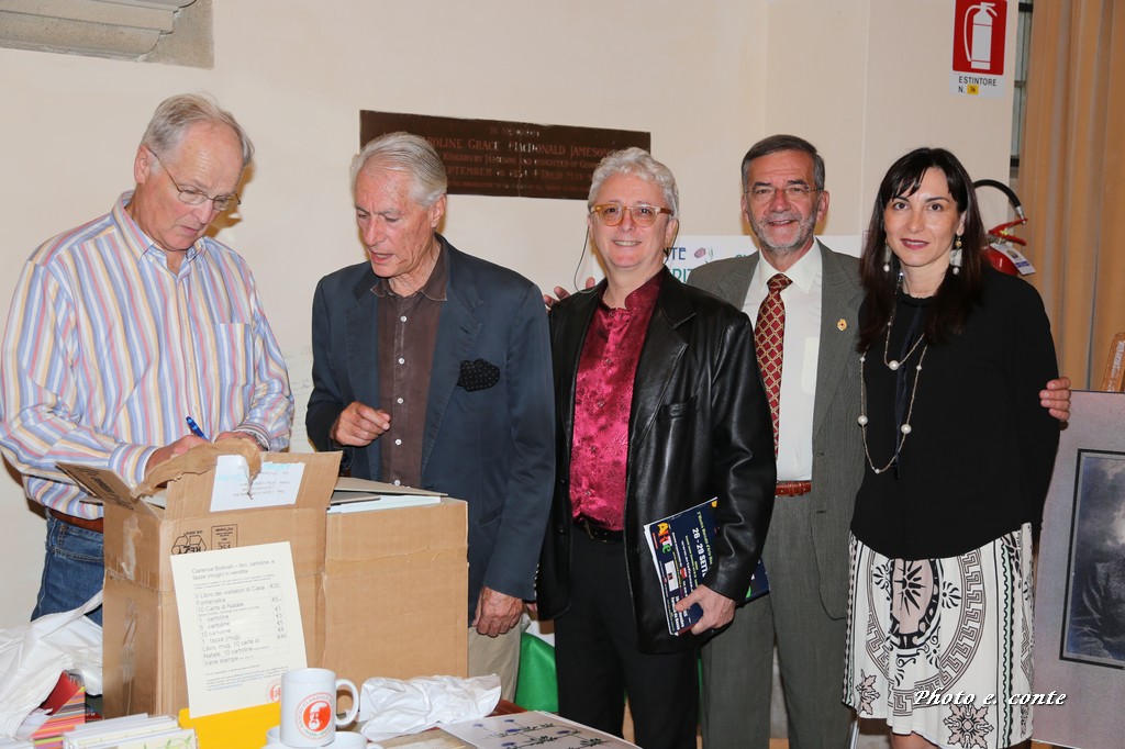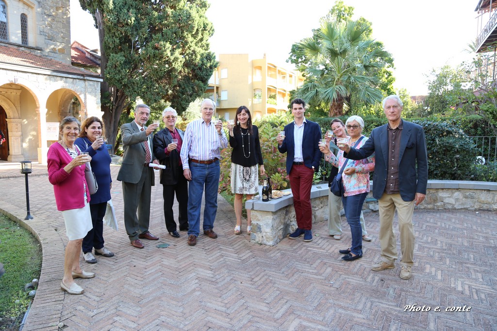 Marcus Bicknell, che sarà insignito del Parmurelu d’Oru 2017 (premiazione domani: domenica 8 ottobre ore 16 ex Chiesa Anglicana a Bordighera), ha brindato alla conclusione dell’allestimento della mostra “Clarence Bicknell, La passione per i fiori diventa arte” con il gruppo ristretto di persone che lo ha aiutato a realizzarla.