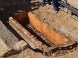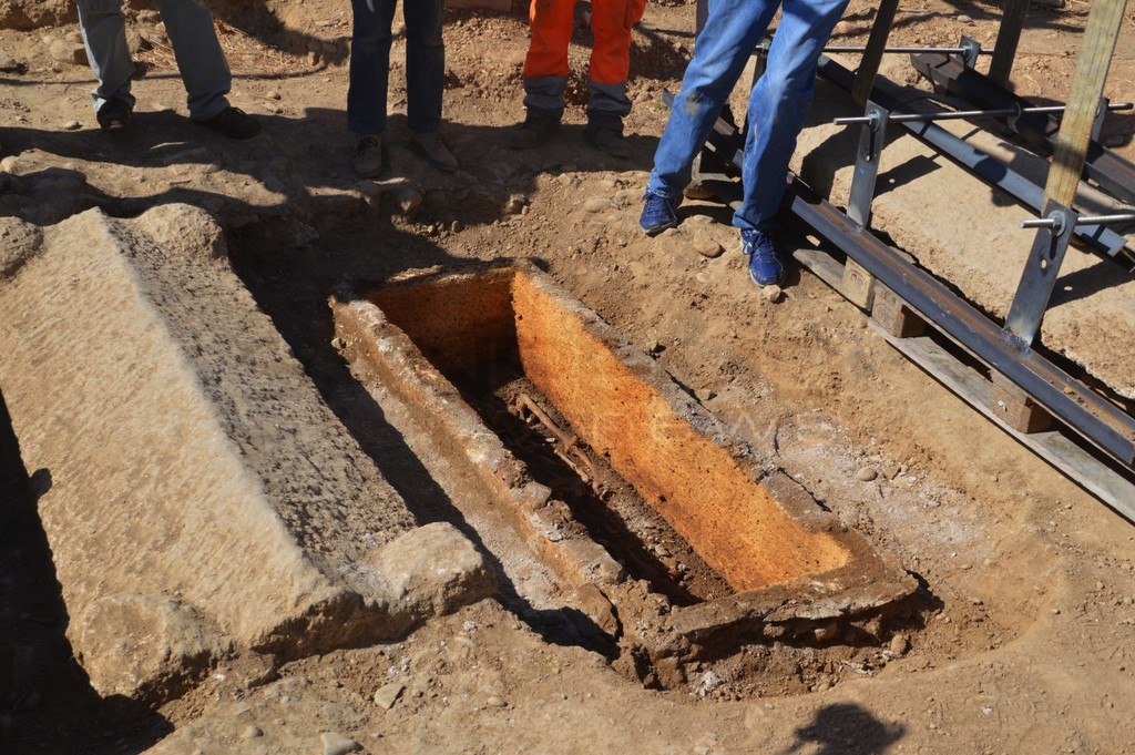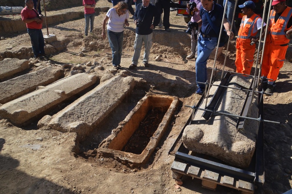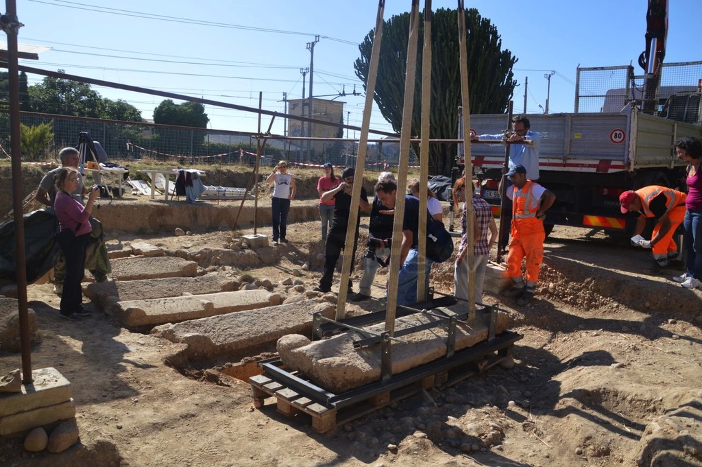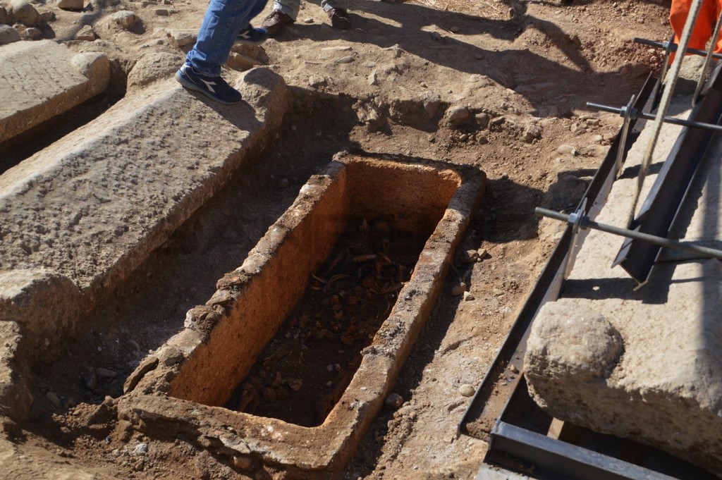 Oggi pomeriggio si è lavorato allo scoperchiamento di una tomba del sepolcreto tardoantico, di notevole interesse archeologico; si è recentemente scoperta un’ampia area a sarcofagi che, a partire dalla seconda metà del V secolo, si impose a nord delle mura ormai abbandonate.