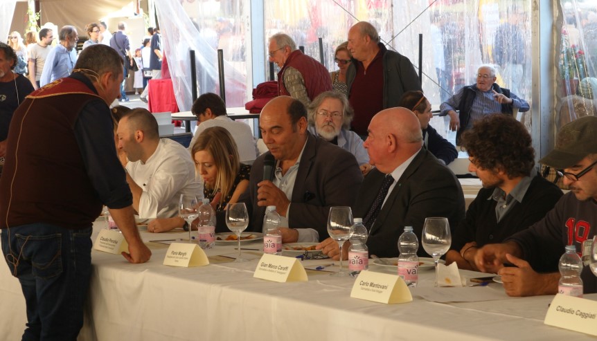 In platea, nei panni dei Giurati, sedevano rappresentanti delle Istituzioni, chef, giornalisti e specialisti del settore enogastronomico: tra questi Laura Maragliano, direttrice di Sale&Pepe, Claudio Porchia, giornalista di Sanremonews e presidente dei “Ristoranti della Tavolozza”, il prof. Gabriele Canali, Giulio Dall’Olio dell’Accademia Italiana della Cucina, l’enologo Mauro Lamoretti, lo chef docente di ALMA Giuseppe Pellegrino e Raffaele D’Angelo di INFormaCIBO.