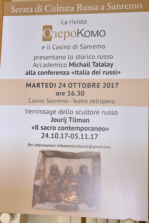 Grande partecipazione ieri al Casinò per l'evento in collaborazione con il consolato Russo nel Teatro dell’Opera. Alle ore 16.30 Nicolai Lilin ha presentato il libro: “Favole (siberiane) Fuorilegge “(Einaudi). Presente Tatiana Rykoun, Direttore della rivista.” Il lago di Como”. Inaugurata anche la mostra di Jurij Tilman ”La forza del mare. L’incontro è stato inserito nel piano di Formazione dei Docenti.