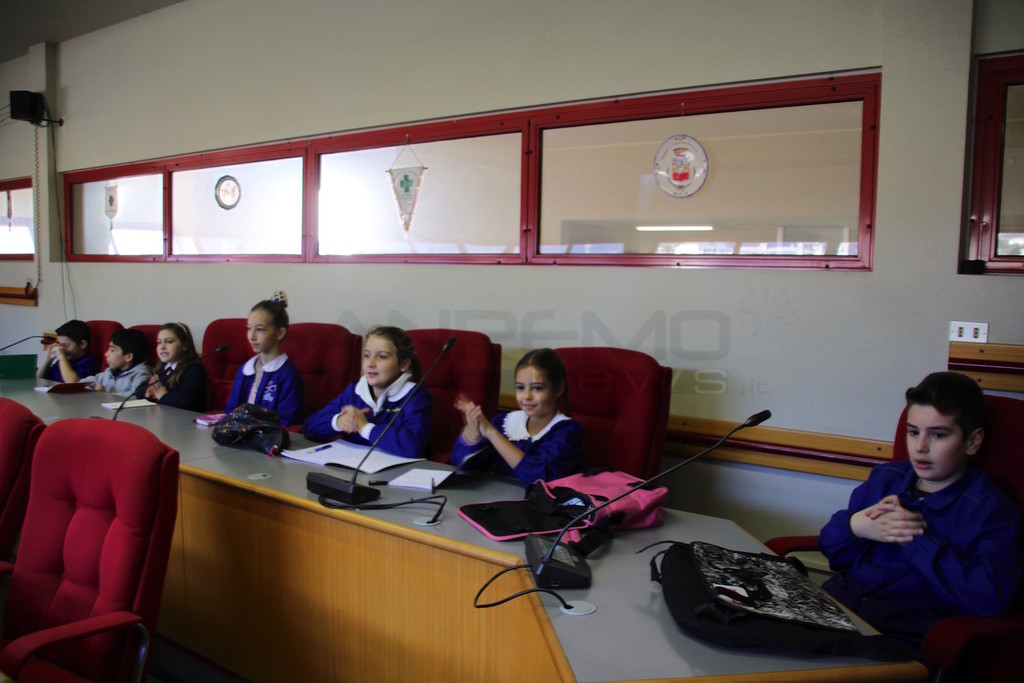 Nei seggi del consiglio i ragazzi eletti a far parte dell'assise, tra il pubblico gli alunni e le insegnanti dell'istituto “Mazzini” oltre ad alcuni orgogliosi genitori.