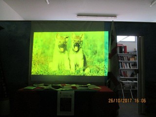 Con l'ausilio di diapositive ha ripercorso l'origine della specie (Canis lupus) mammifero delle famiglia dei canidi. Il corpo del lupo è snello e lungo sino a 1,70 m., compresa la coda. Il peso può raggiungere 50 kg, la testa e il muso sono allungati con mascelle assai robuste, la pelle può essere di vario colore.