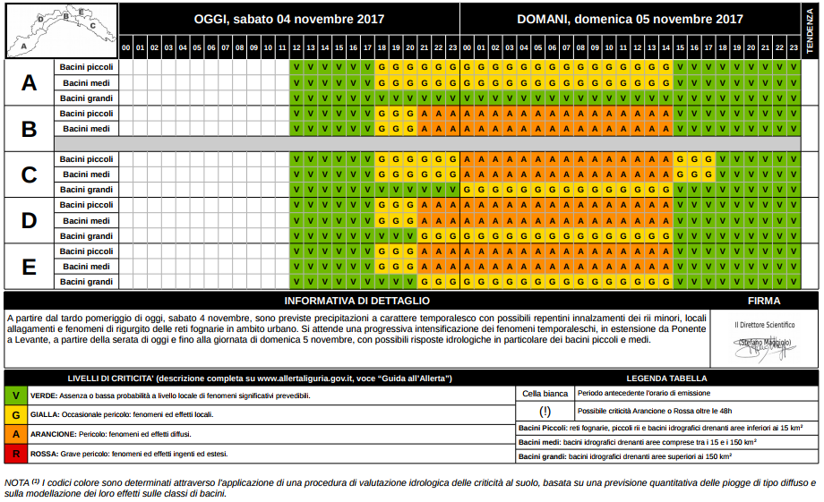 Come annunciato ieri, ci sarà il rischio di un peggioramento delle condizioni meteo verso la serata di oggi. L’Arpal ha diramato lo stato di 'Allerta gialla' dalle 18 di oggi alle 15 di domani.