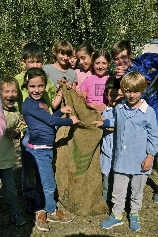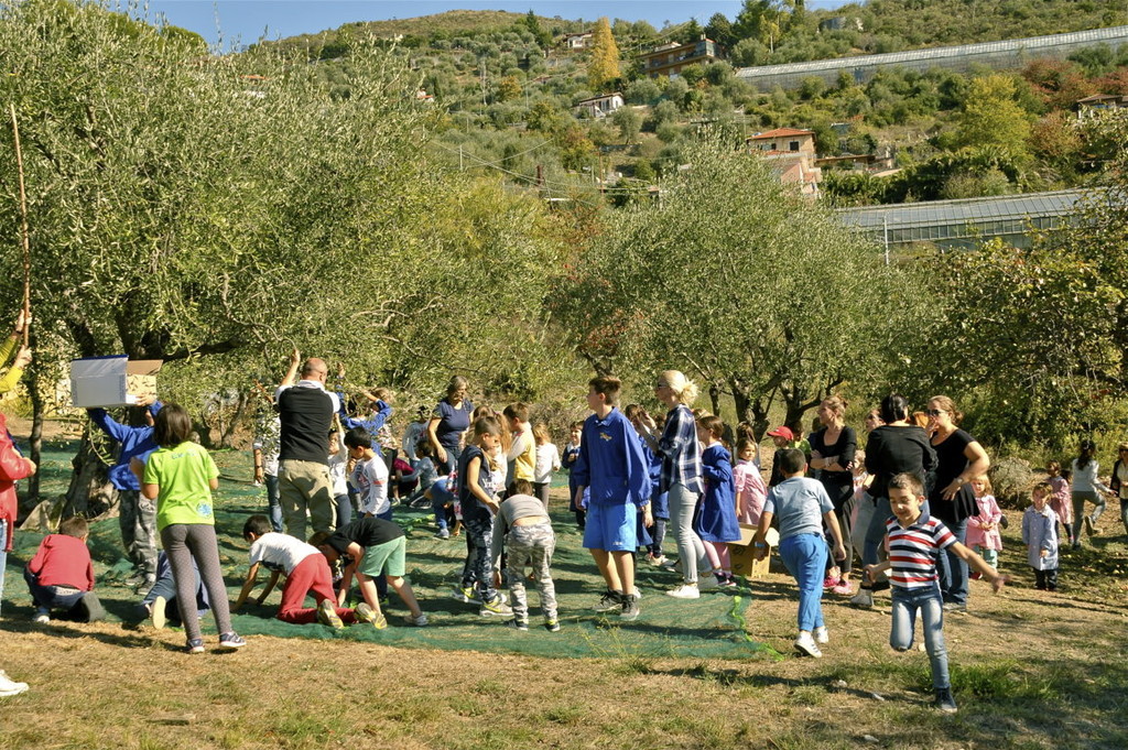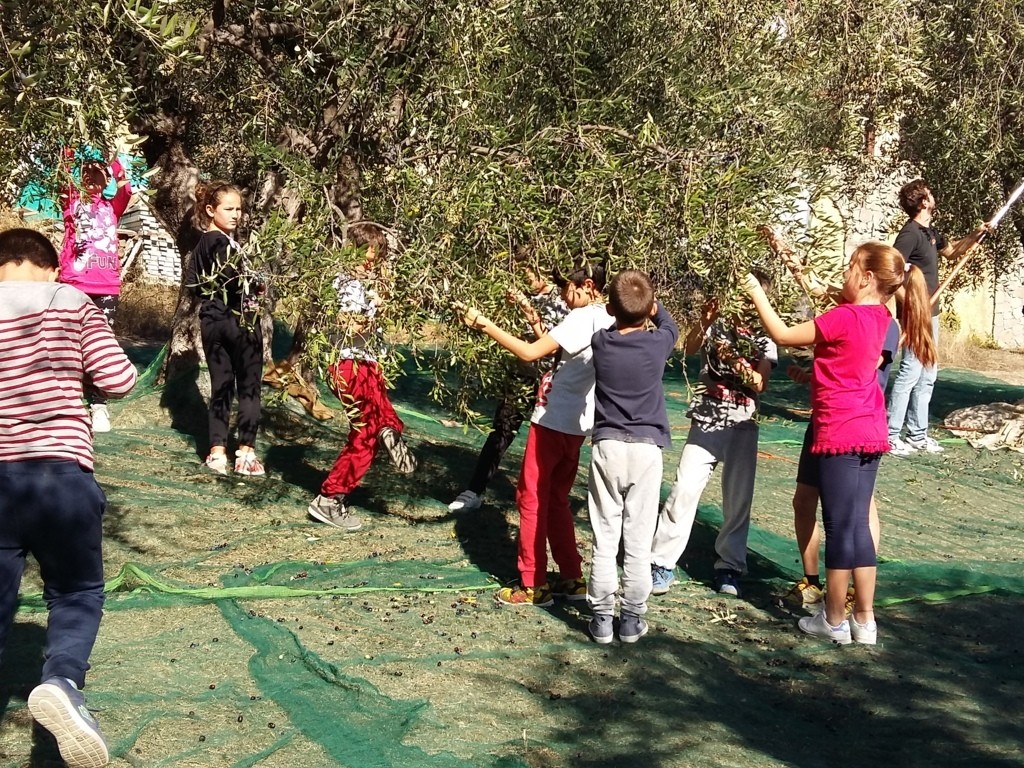 Tutti i bambini dell'Istituto Comprensivo “Italo Calvino”, gli insegnanti e numerosi genitori, come gli anni precedenti, hanno iniziato la raccolta delle olive. I genitori stendono le reti sotto gli alberi, i bambini entusiasti staccano dai rami più bassi le olive e le fanno cadere sulle reti.