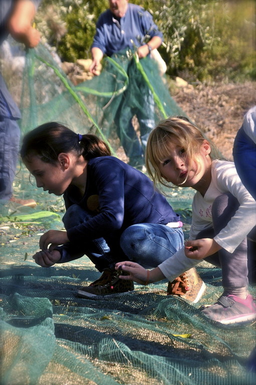 I bambini osservano con attenzione e raccolgono tutte le olive che saltano fuori dalle reti. Infine le olive così raccolte vengono trasportate presso il frantoio dove attraverso la frangitura producono l’olio.