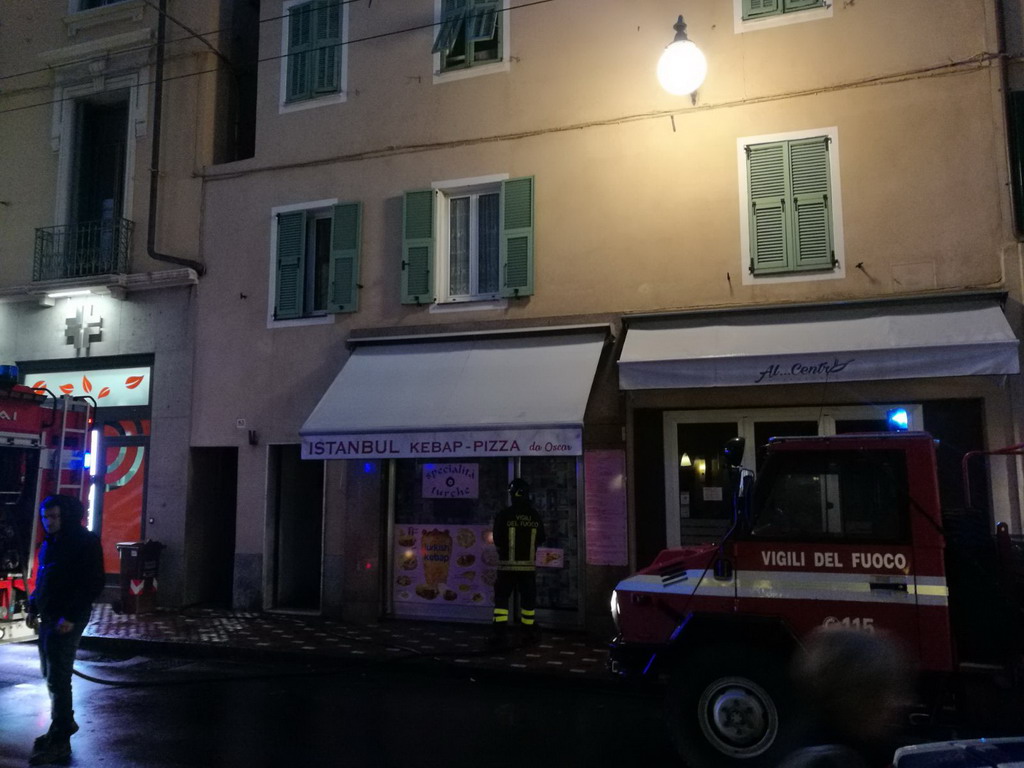 Bordighera: incendio nella cucina di un Kebab in via Vittorio Emanuele, intervento dei VVF (Foto e Video)