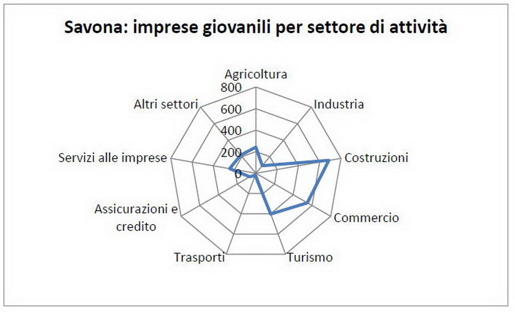 Savona concentra il 26% delle imprese giovanili nel settore edile, il 21% nel commercio, il 15% nelle attività turistiche e il 9% nei servizi alle imprese e nell’agricoltura.