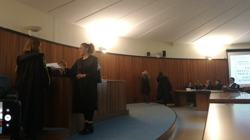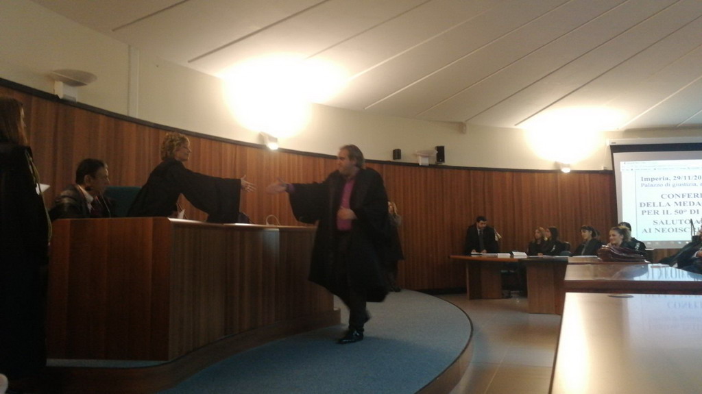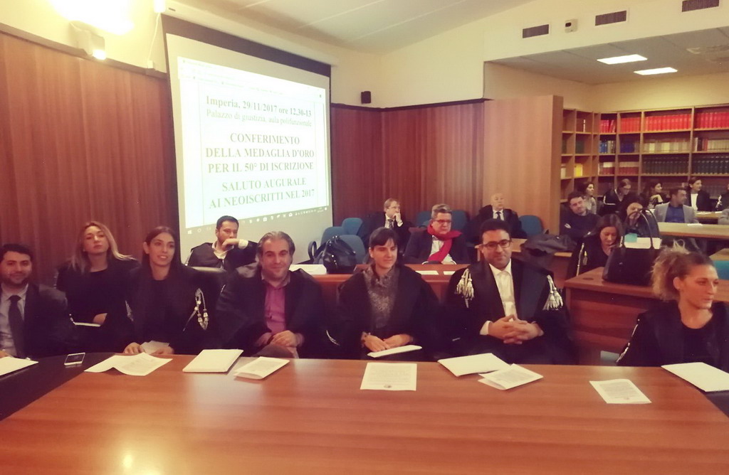 Si è svolta oggi, nell’aula polifunzionale del tribunale di Imperia ed organizzata dall’ordine degli avvocati, la cerimonia per il conferimento della medaglia d’oro per il 50° di iscrizione.