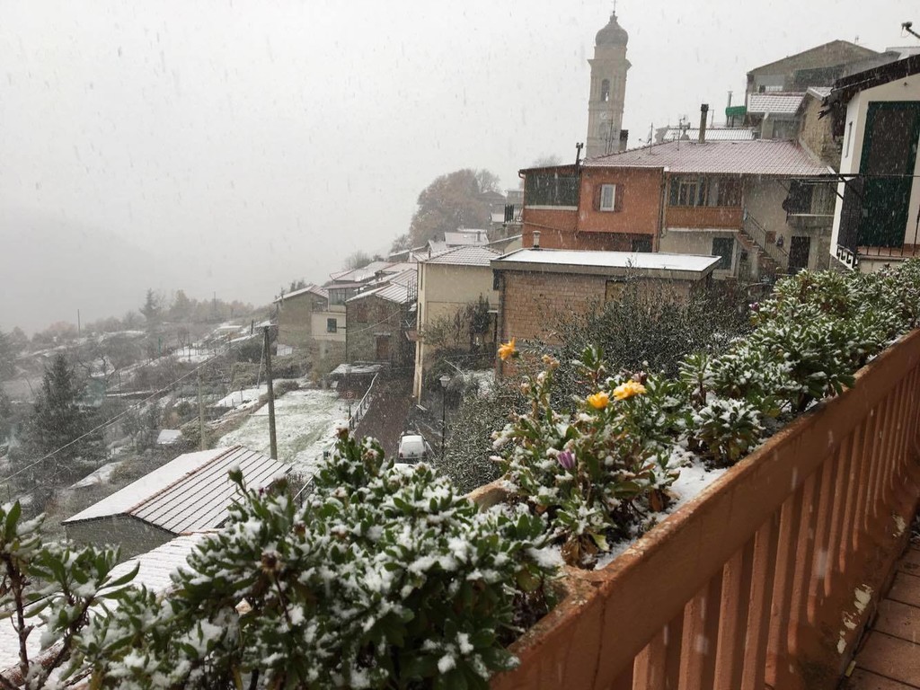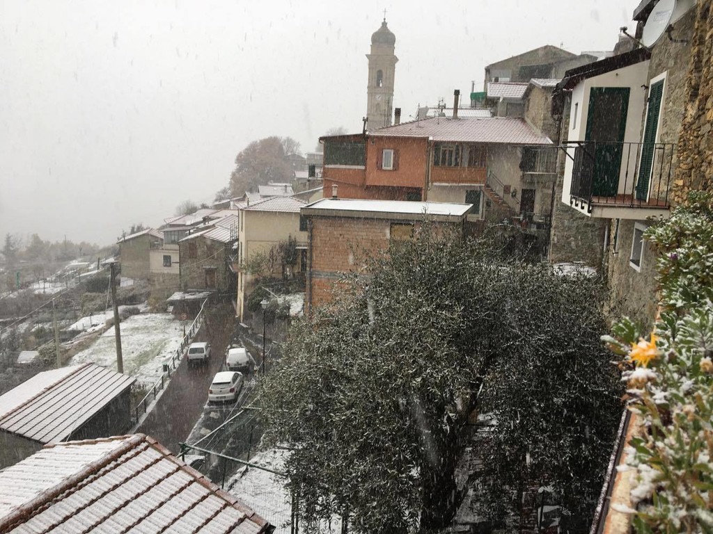 Numerosi fiocchi sono stati visti anche su Triora e nelle zone più interne. Al momento non si registrano danni.