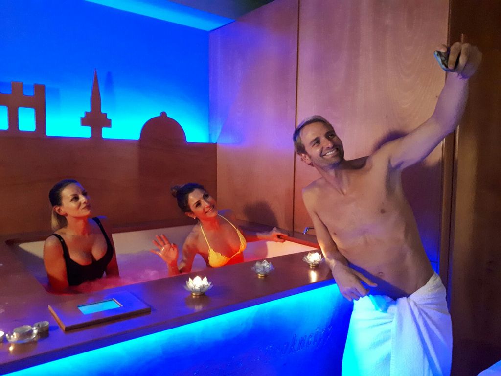Tra le scene girate la scorsa domenica potremmo vedere Moreno e Rosolino immersi nella Bio Sauna Salina e Lady Run ed Emilia Calicchio durante un massaggio. Oltre le esigenze puramente sceniche, dopo le riprese la conduttrice Martina Panagia si è fatta fare un massaggio vero e proprio, così come Moreno e Rosolino, mentre alla fine il rapper e l'ex nuotatore si sono immersi nell'hydrofuro assieme alle ragazze. Nella gallery sottostante alcune immagini del dietro le quinte.
