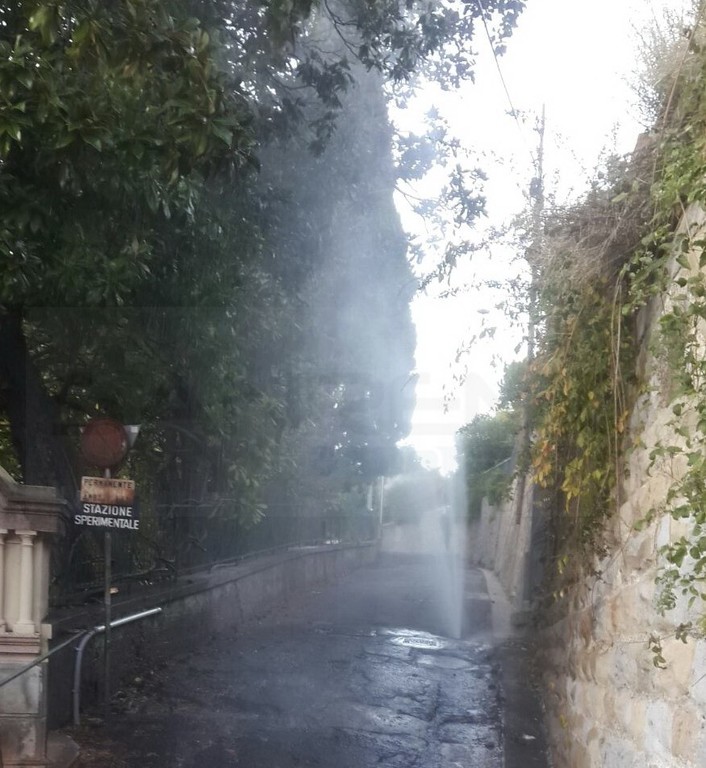 Esplode un tubo dell’Amaie e provoca un ‘geyser’ alto fino a 4 metri. E’ accaduto oggi pomeriggio in corso Inglesi a Sanremo, nei pressi dell’Istituto Sperimentale per la floricoltura.