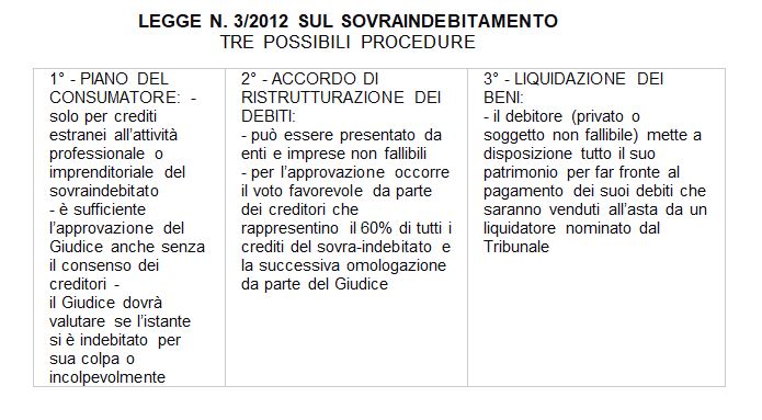 (In basso un sintetico prospetto dei soggetti che possono avvalersi della legge N.3 del 2012)
