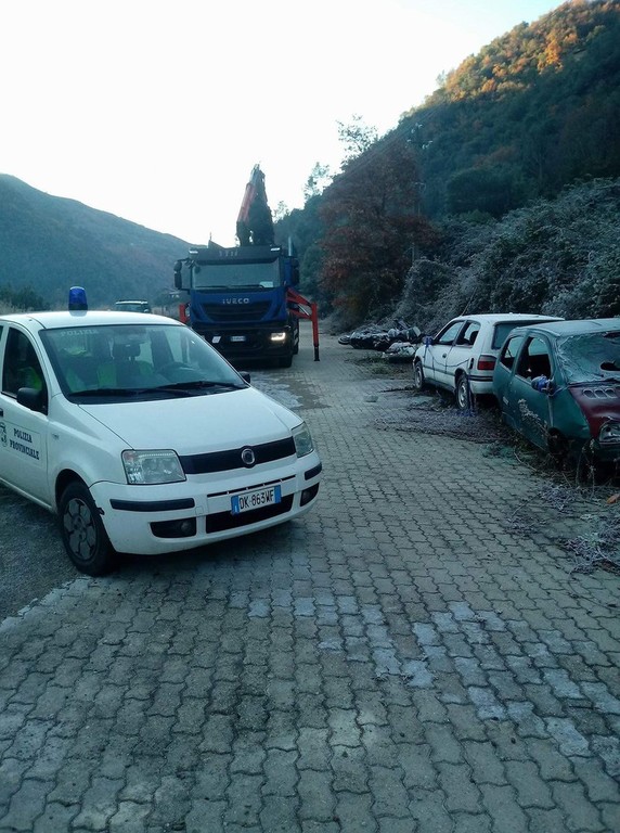 Questa mattina i mezzi della RivieraRecuperi sotto stretta sorveglianza degli ufficiali di polizia hanno provveduto al recupero di tre auto, un furgone ed alcuni scooter abbandonati da tempo.