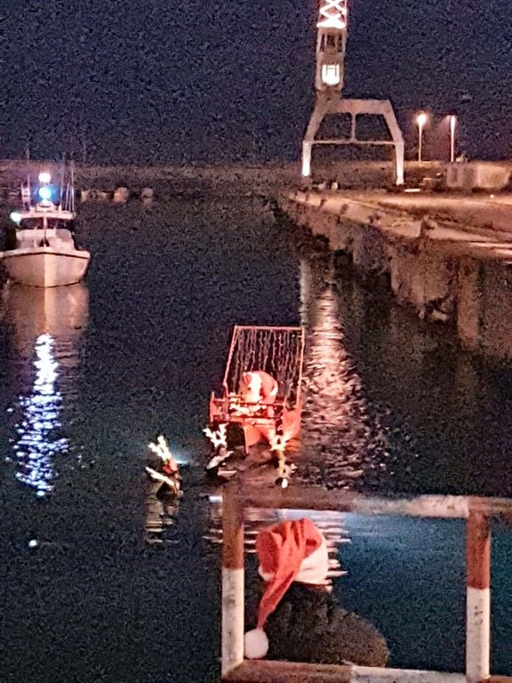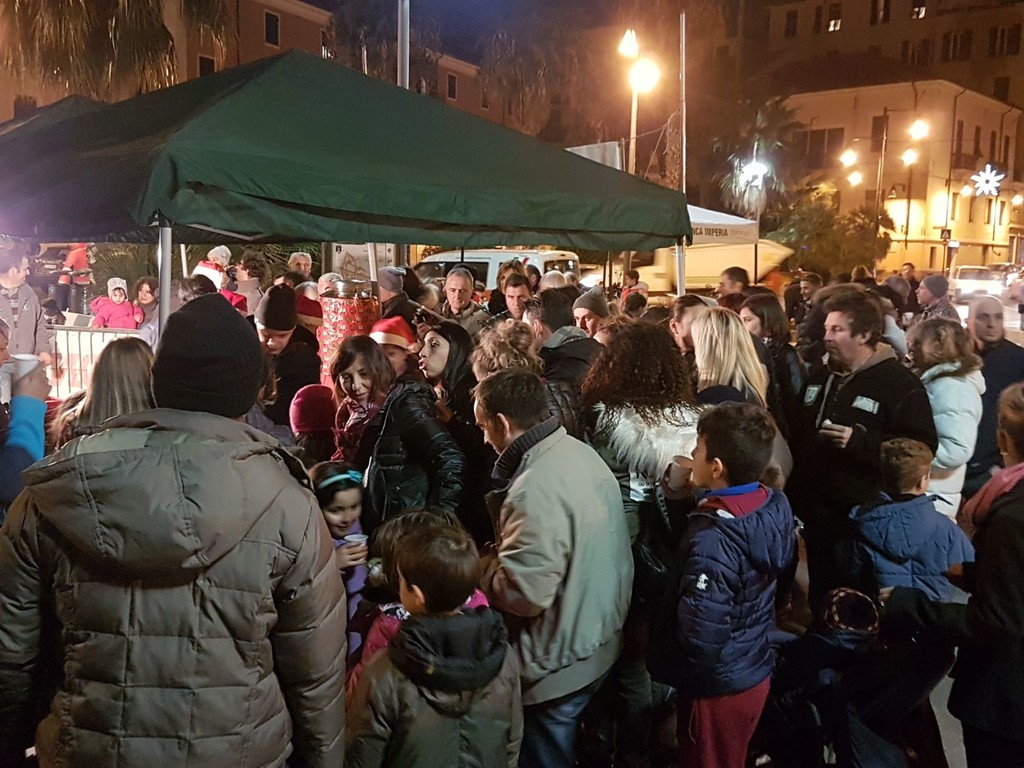 Babbo Natale è arrivato alle 17 su una slitta galleggiante trainata da otto renne d'eccezione: i membri dell'associazione “Imperia nel Blu”.