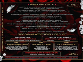 Il costo del ‘Gran Gala & Dinner Show’ (comprensivo di: champagne Pommery di benvenuto, vini, bottiglia di spumante per il brindisi di mezzanotte e pass d’uscita per la discoteca PartyNight ‘Le Cabaret Rouge’ è di 190 euro.