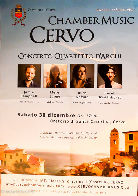 Oggi, sabato 30 dicembre 2017, a Cervo presso l'Oratorio di Santa Caterina si è svolto il concerto del quartetto d'archi Chamber Music