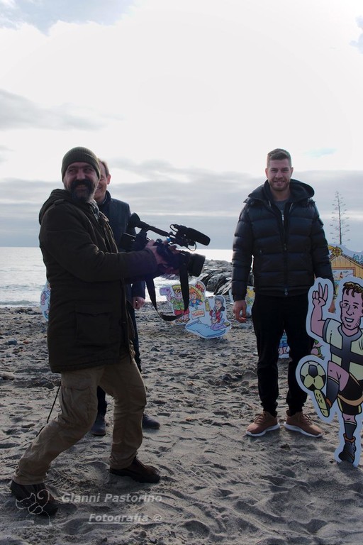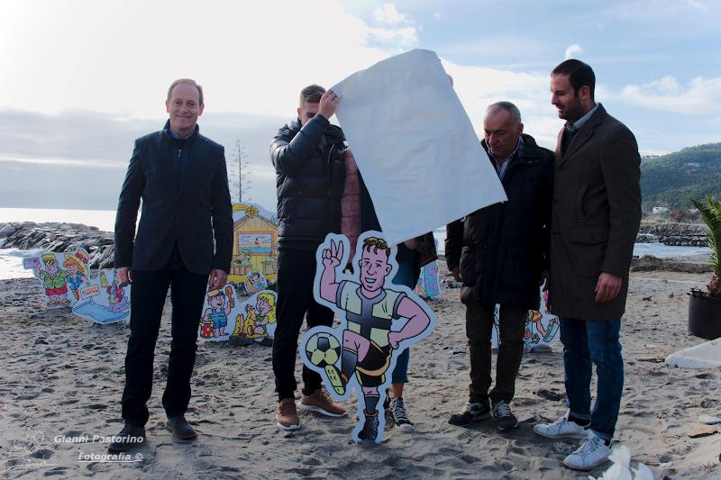 Riccardo Gagliolo, forte difensore del Parma originario proprio di Andora, è stato rappresentato da una sagoma del presepe che andrà ad aggiungersi alle altre già presenti sulla sabbia andorese.