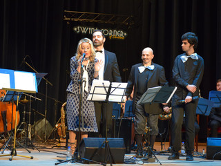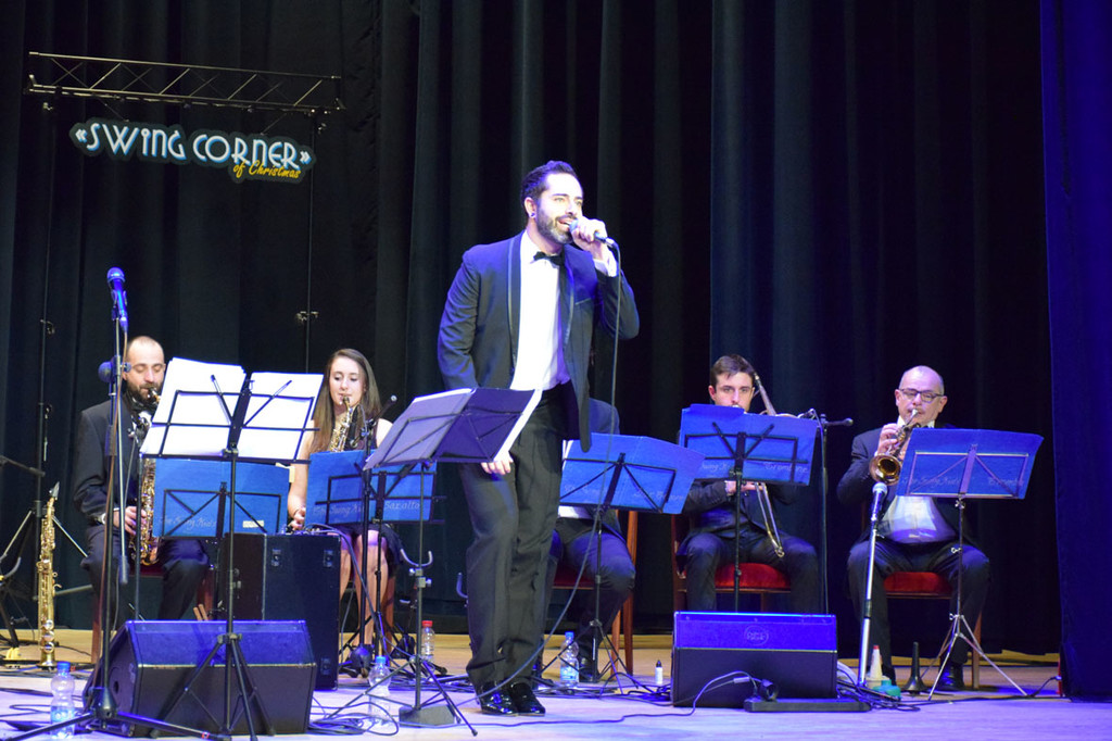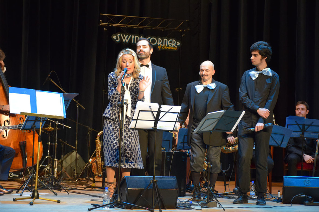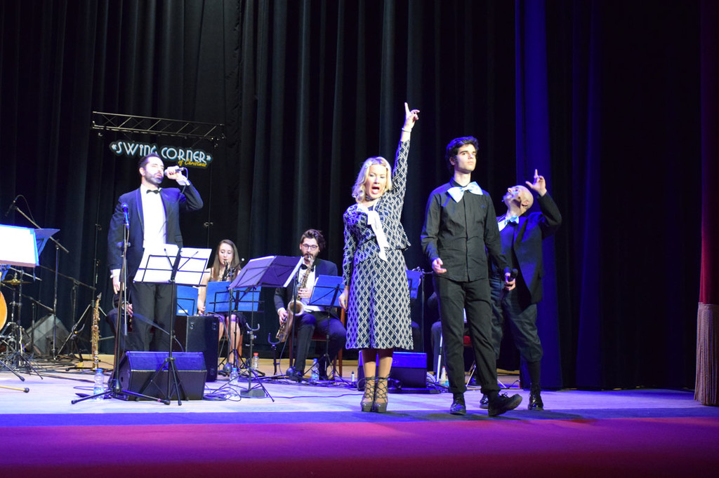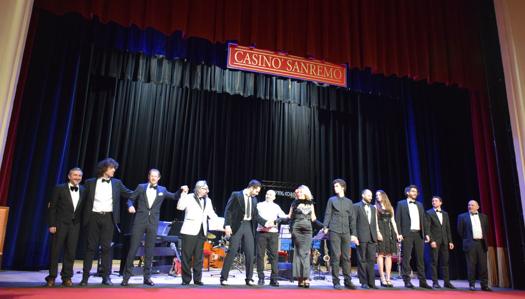 Con un teatro del Casinò «sold out» si è conclusa la sesta annata della rassegna «Swing Corner of Christmas» organizzata dal Centro Stan Kenton grazie al contributo del Comune di Sanremo e il patrocinio della Fondazione Lelio Luttazzi di Roma. Lo spettacolo andato in scena la scorsa Domenica 7 ha decretato il pieno successo dell’orchestra «Swing Kids» diretta da Freddy Colt e della formula del varietà, con l’alternanza tra canzoni, brani strumentali e siparietti comici. Applausi per l’orchestra formata dalle giovani leve del jazz locale, per i cantanti Andy Arnaldi e Yvonne Shaw e per l’attore caratterista Max Carja e per il giovane Davide Fassola. Atmosfere retrò, costumi, ed il scelto programma con brani di Barzizza, Ceragioli, Luttazzi, Pizzigoni, Ferrari e Bruno Martino hanno conquistato la platea che ha salutato gli artisti con un lunghissimo applauso. Lo spettacolo celebrava tra l’altro il ventennale della messa in scena di «Questioni di Tempo», un musical prodotto a Sanremo nel 1998 dalla collaborazione artistica tra Freddy Colt e Thommy Campbell, di cui Angelo Giacobbe ha ricordato la felice esperienza.