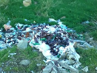 ella indifferenza generale si possono osservare dozzine di queste bottiglie ma anche molti altri rifiuti, materiali edili, pneumatici e persino una bombola del gas.