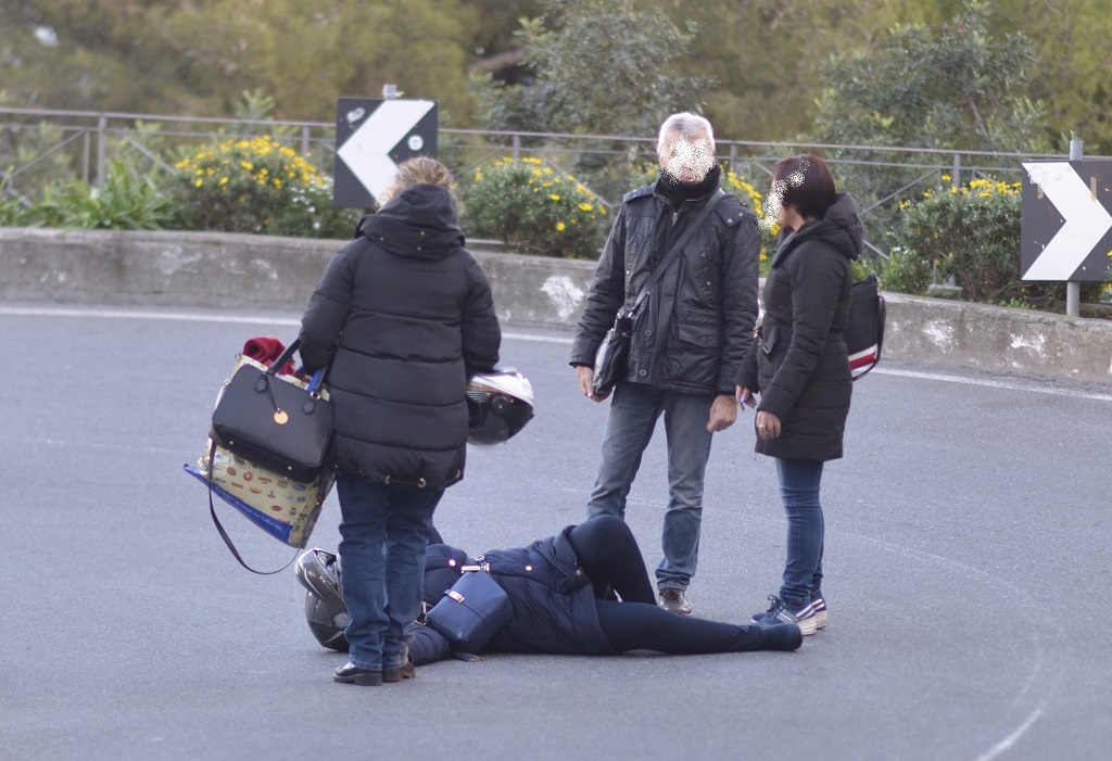Secondo le testimonianze, una donna a bordo di uno scooter, su cui viaggiava anche un passeggero, ha perso il controllo del mezzo scivolando sull’asfalto