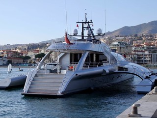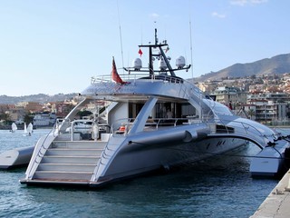 Attracca a Porto Sole, a Sanremo il “Galaxy of happiness”, il trimarano di lusso più lungo al mondo, grazie ai suoi 53 metri.