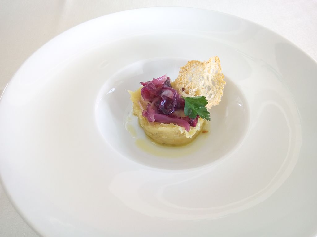 Trancio di Salmone con purea di sedano rapa al Tartufo e cavolo nero