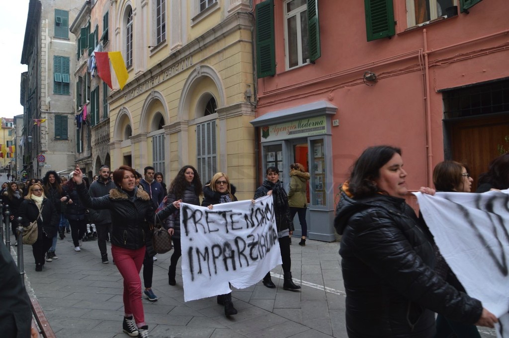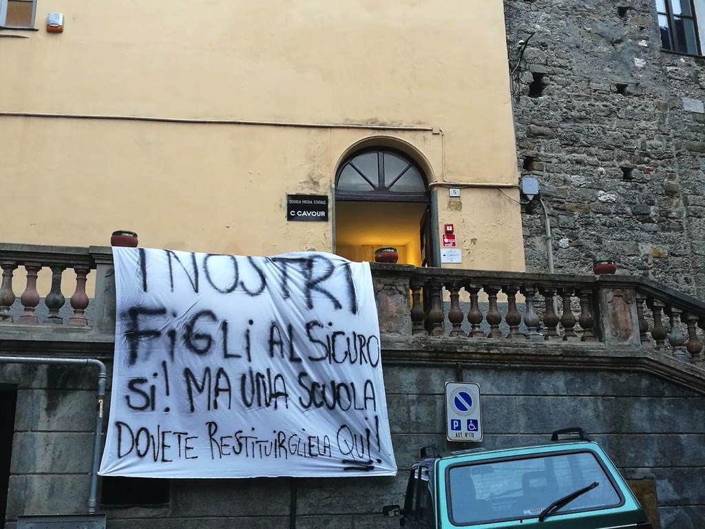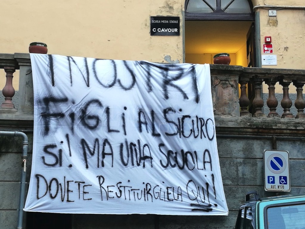 All’esterno della scuola è comparso questa mattina uno striscione che recita: “I nostri figli al sicuro. Sì, ma una scuola dovete restituirgliela qui”. Una frase che testimonia come le famiglie della città alta vogliano che la scuola ‘Cavour’ resti un punto fermo del centro storico. Intorno alle 9.30 la manifestazione ha raggiunto la piazza del Comune con i partecipanti per incontrare il Sindaco Enrico Ioculano.