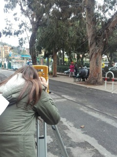 Il gruppo di studenti della terza media, aiutati e guidati dai colleghi più grandi del corso Geometri-CAT hanno preso le misure del giardino della scuola con uno strumento topografico che permette di misurare grandi distanza, la stazione totale. Una volta prese le misure si è passati alla parte grafica, riportando le stesse in scala su fogli di carta millimetrata.