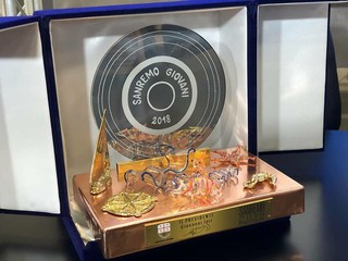 Il premio che verrà consegnato al vincitore delle Nuove proposte è stato realizzato grazie al supporto del marchio “Artigiani in Liguria”: si tratta di un’opera a tema marinaro, un disco in vetro su un supporto in rame fatto a mano, con intarsi in ottone. Attorno al disco, emergono altre decorazioni in vetro che rappresentano stelle marine e conchiglie. Gli artisti che hanno realizzato il premio sono Filippo Passalacqua di Sori e Giancarlo Faccio di Genova per le parti in metallo, Vanessa Cavallaro e Costantino Bormioli, entrambi di Altare, per quelle in vetro. Un tema scelto per augurare al vincitore di poter veleggiare con il vento in poppa in un mare di successo, partendo da quello ligure e di Sanremo, trasparente, pulito e ricco di vita.