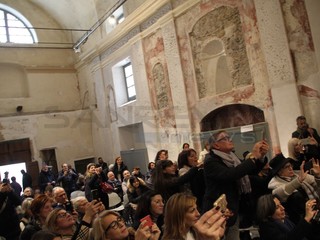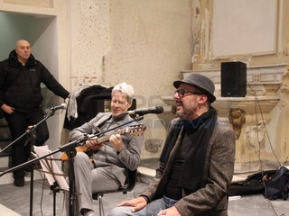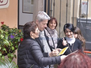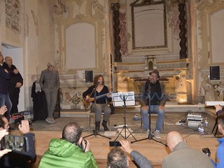 Il giro nella città vecchia ha portato Baglioni fino alla Chiesa di Santa Brigida dove ad attenderlo c'era il noto cantautore locale Amedeo Grisi. Momenti toccanti grazie alle parole di Baglioni che si è intrattenuto per uno struggente duetto con Grisi.