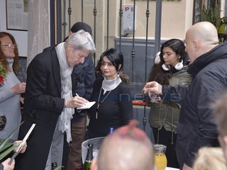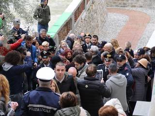 Una vera e propria folla ha accolto Claudio Baglioni, il direttore artistico del 68° Festival di Sanremo, impegnato stamattina in un giro nei viottoli della Pigna. Tantissime le persone che si sono avvicinate per scattare un selfie o chiedere un autografo.