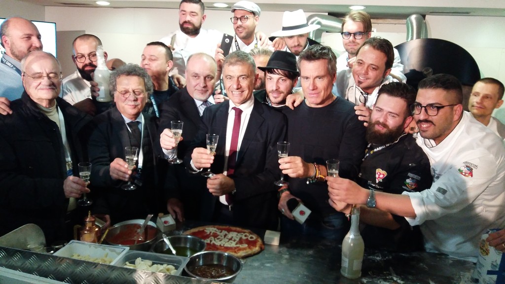 Alfonso Pecoraro Scanio, presidente della Fondazione UniVerde e promotore della petizione mondiale #pizzaUnesco per candidare il più celebre piatto italiano al riconoscimento Unesco, è giunto al Palafiori per festeggiare insieme con il team pizzaioli il titolo della pizza Patrimonio dell'Umanità..
