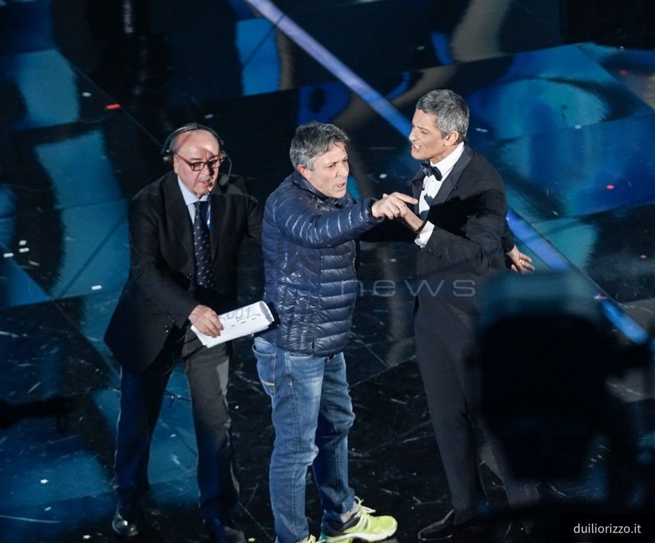 Siparietto sull'orario di ingresso e infine è proprio lui il primo a calcare il palco dell'Ariston, con un rassegnato Baglioni che gli dice: "Hai vinto tu". Entra Fiorello.