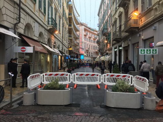 - MODIFICHE ALLA VIABILITA’ - In via Asquasciati c’era troppo movimento con situazione di promiscuità e questa area non mi sembra che possa essere una zona senza regole. Per questo dalle 18 sarà applicato un blocco per i veicoli ed i pedoni, sul marciapiedi che passa a lato dell’Hotel Globo e arriva fino alla Galleria degli Artisti. Per i mezzi, potranno passare solo taxi o chi va in albergo. Le persone potranno passare solo sul marciapiede dal lato della Stazione RT”. Quindi dalle 18 le auto non potranno più scendere da via San Francesco e non arriveranno nemmeno da via Manzoni. Ulteriori sbarramenti, questa volta pedonali, saranno applicati in via Volturno nell’area pertinente al Teatro Ariston e all’interno dell’edificio che ospita la OVS, all'ultimo piano dove trova spazio RTL. In modo che chi entra da via Roma o via Asquasciati non possa arrivare fino in via Matteotti.