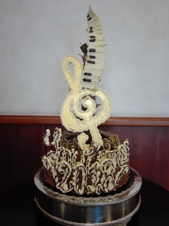 Non solo musica e non solo fiori questa settimana a Sanremo, ma anche gastronomia di alta qualità in tutte le sue forme. E' capitato così che il Maestro Artigiano del cioccolato Andrea Setti di Taggia si é visto commissionare una golosa scultura realizzata completamente in cioccolato, incentrata sul tema del Festival di Sanremo.