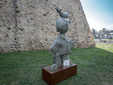 Dice l’artista: “Il bronzo questo materiale eterno di cui l’umanità si avvale da sempre per raffigurare imperatori, re e principi vale anche come magia che fa apparire il sorriso sui volti umani quando si comincia giocarci un po’. Esiste cosa più bella di un sorriso? Arrampicati sopra una scultura che arriva come uno strano compagno di viaggio, ci si trova già ad un millesimo di centimetro dalla superficie della realtà. Le piazze, le strade che percorriamo spesso di fretta, c’è ancora chi le percepisce nella loro familiarità scontata? L’arte è perturbante, nel senso migliore del termine, dal momento che riporta agli occhi le cose trascurate il non visto. L’estraneo, ciò che non è consueto, è una possibilità che si apre per noi. E’ un uscire da sé, come piccole fughe in grado di aprire il cuore e lo sguardo a spazi più ampi. E’ un regalo per chi è disposto ad accoglierlo. Fermarsi qualche volta dimenticando se stessi, come accade nel gioco e nell’amore: questo, sì, ferma il tempo per un istante. Ci libera dalla nostra finitezza. Essere senza tempo anche solo per un attimo è felicità”.