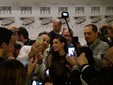 Un'accoglienza calorosa, tra selfie, flash e saluti per radio, televisioni e siti web.