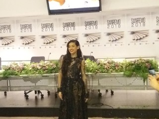Sorriso smagliante per la giovane Alice Caioli, che si è aggiudicata il premio della sala stampa "Lucio Dalla" nella serata dedicata alle Nuove Proposte.