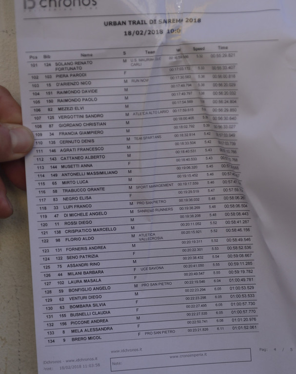 Una gara non competitiva che ha richiamato in città appassionati dilettanti e non del mondo del podismo. Alla fine la vittoria è andata a Denis Capillo con il tempo di 38.30. Tra i partecipanti si è notata la presenza di Giandomenico Mesto, calciatore ex di Panathinakos, Napoli e Genoa, sposato con la ballerina sanremese Sara Facciolini e, quindi, matuziano d’adozione. Al secondo posto Giacomo Strafforello (39.41), al terzo Marco Salviccio (40.09).