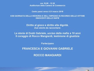 “Come tutti sanno il Parlamento ha istituito la giornata della memoria e dell’impegno. Noi ci stiamo preparando e stiamo diffondendo in tutta la provincia le informazioni e le testimonianze sul 21 marzo, quando ci sarà la manifestazione durante la quale si leggeranno i nomi di più di novecento vittime innocenti delle mafie, per rendere onore a tutti, anche a quelli sconosciuti.