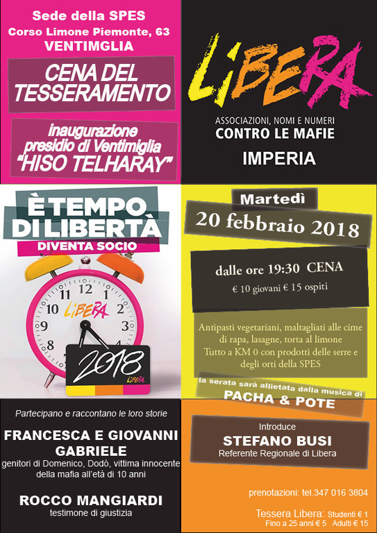 Alla cena della sera presenteremo anche il neonato presidio di Ventimiglia, che ha il nome di Hiso Telaray, vittima innocente di mafia. Era un bracciante straniero, un migrante ucciso in Puglia che vogliamo ricordare nella città in cui c’è il problema pesante dei migranti.