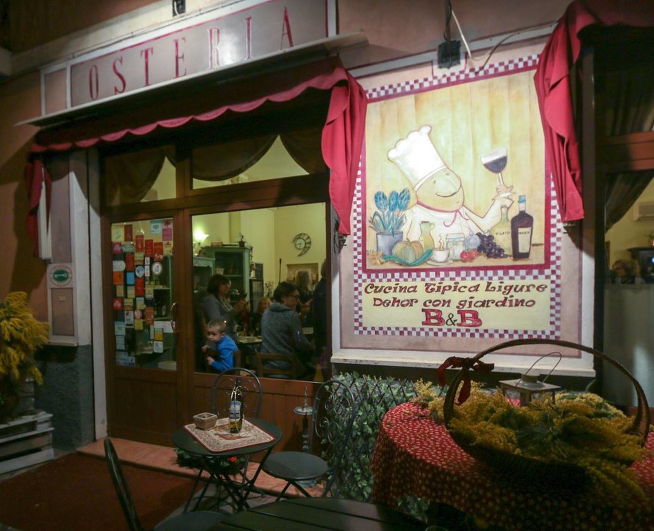 Per l'inaugurazione lo chef Cinzia Chiappori si è avvalsa del talento della figlia Miranda, della professionalità del suo staff in rosa e dell’aiuto di due chef amici, Laura Anfossi e Giorgio Brignone. Dalle 18,30 alle 23 è stato un via vai di amici (molti quelli con la chiocciola di Slow Food, tra cui Monica Maroglio, Fiduciaria della Condotta di Albenga, Alassio e Finale Ligure) e conoscenti. Il locale, alleggerito da molte lavagne e gadget, ora sempre più grande, sicuramente più arioso, davanti al bancone una vetrina refrigerata con formaggi e salumi interessanti, torna al suo nome “Osteria”, e scrive in bella vista che il pane è preparato in casa con lievito madre (si può anche acquistare per asporto).